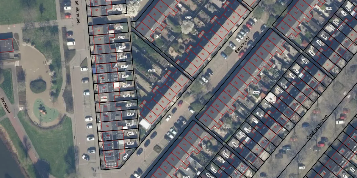 Het perceel waarop Barietgeel 77 staat heeft een oppervlakte van 1058 m². Dit is een zeer groot perceel. De perceeloppervlakte wordt geregistreerd door het Kadaster. Gedetailleerde informatie over de maten van dit perceel kunt u vinden in het rapport Kadastrale kaart met maatvoering van Barietgeel 77.