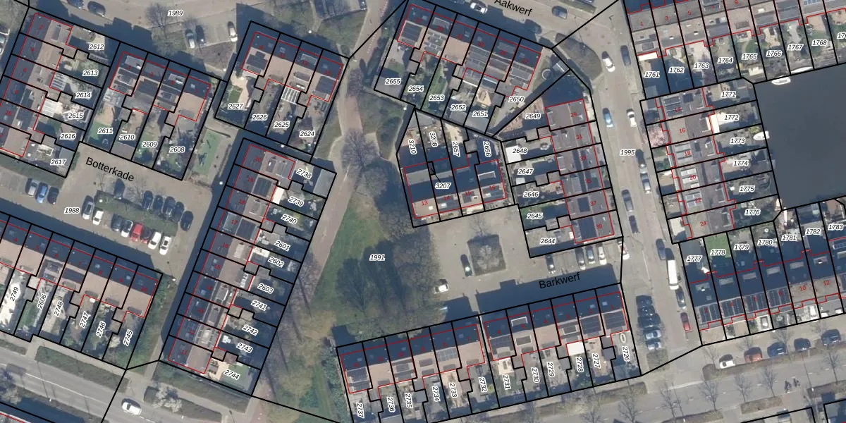 Gebruik de zoekbalk of klik op een perceel voor informatie over de adressen binnen dit perceel.