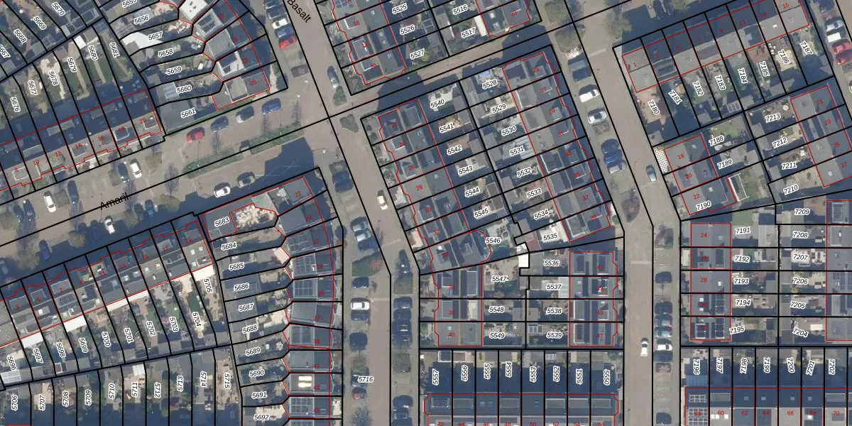 Het perceel waarop Basalt 30 staat heeft een oppervlakte van 134 m². Dit is een middelgroot perceel. De perceeloppervlakte wordt geregistreerd door het Kadaster. Gedetailleerde informatie over de maten van dit perceel kunt u vinden in het rapport Kadastrale kaart met maatvoering van Basalt 30.