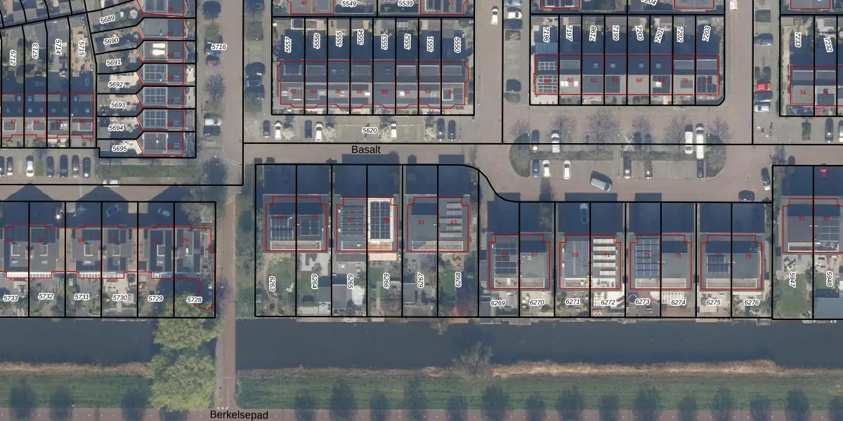 Het perceel waarop Basalt 61 staat heeft een oppervlakte van 305 m². Dit is een groot perceel. De perceeloppervlakte wordt geregistreerd door het Kadaster. Gedetailleerde informatie over de maten van dit perceel kunt u vinden in het rapport Kadastrale kaart met maatvoering van Basalt 61.