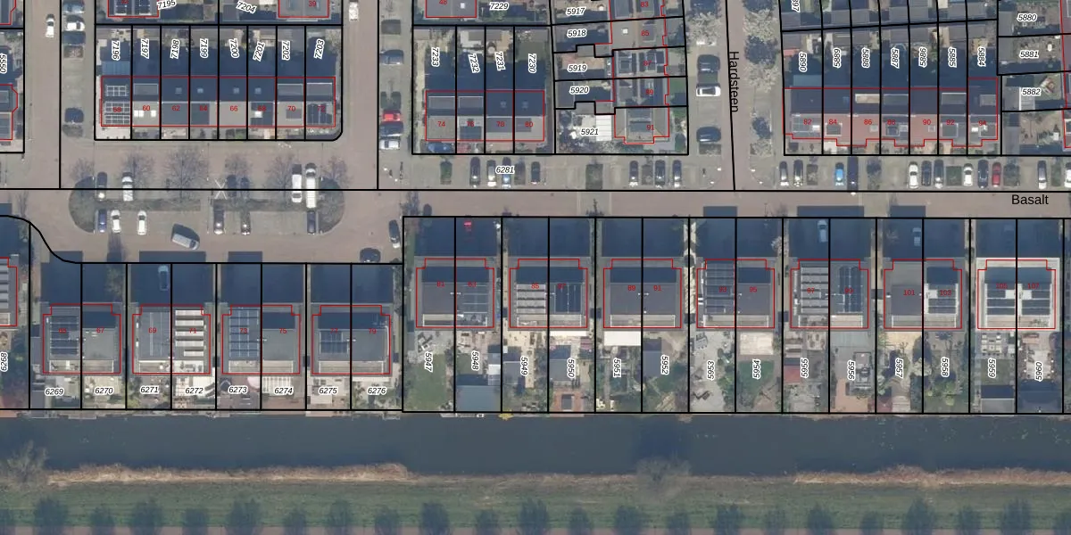 Het perceel waarop Basalt 85 staat heeft een oppervlakte van 322 m². Dit is een groot perceel. De perceeloppervlakte wordt geregistreerd door het Kadaster. Gedetailleerde informatie over de maten van dit perceel kunt u vinden in het rapport Kadastrale kaart met maatvoering van Basalt 85.