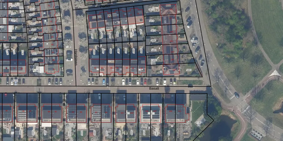 Het perceel waarop Basalt 94 staat heeft een oppervlakte van 153 m². Dit is een middelgroot perceel. De perceeloppervlakte wordt geregistreerd door het Kadaster. Gedetailleerde informatie over de maten van dit perceel kunt u vinden in het rapport Kadastrale kaart met maatvoering van Basalt 94.