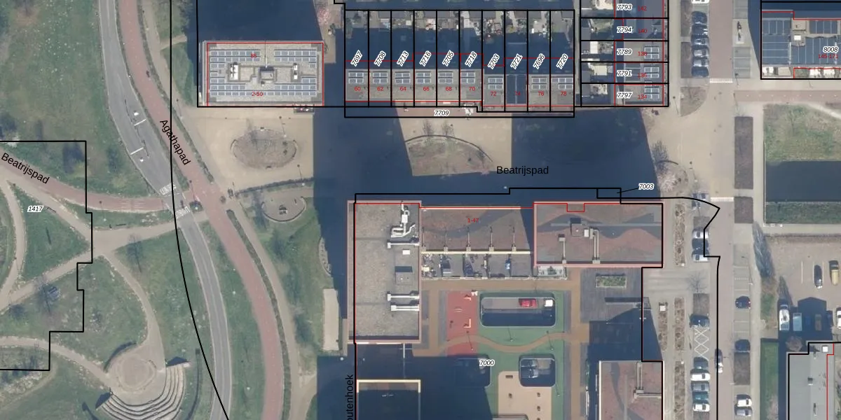 Het perceel waarop Beatrijspad 1 staat heeft een oppervlakte van 5865 m². Dit is een zeer groot perceel. De perceeloppervlakte wordt geregistreerd door het Kadaster. Gedetailleerde informatie over de maten van dit perceel kunt u vinden in het rapport Kadastrale kaart met maatvoering van Beatrijspad 1.