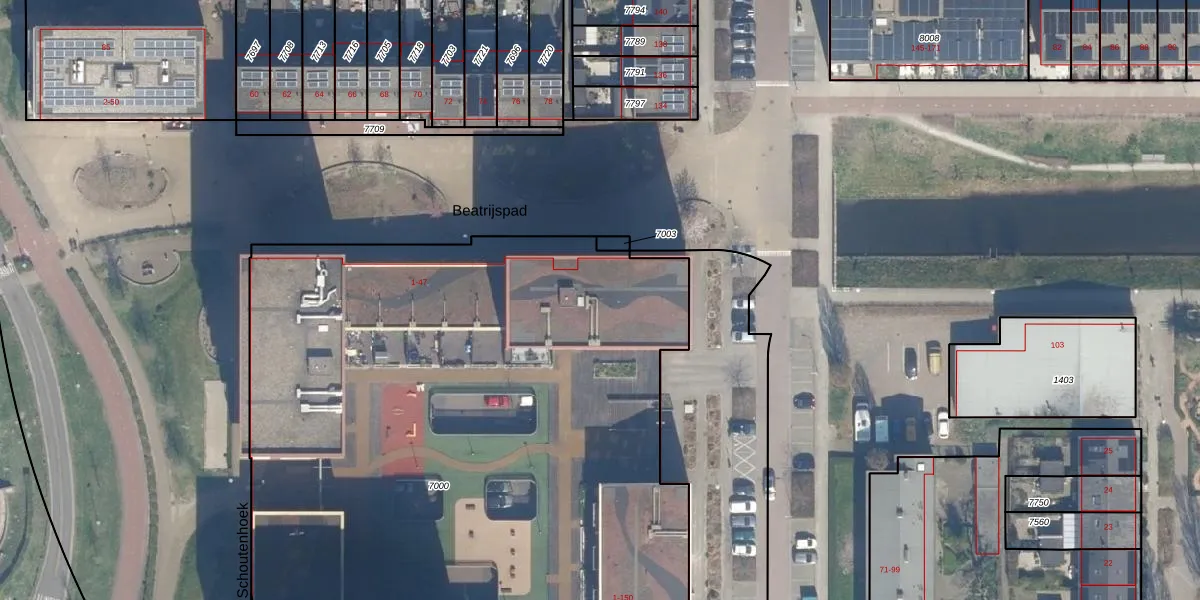 Het perceel waarop Beatrijspad 31 staat heeft een oppervlakte van 5865 m². Dit is een zeer groot perceel. De perceeloppervlakte wordt geregistreerd door het Kadaster. Gedetailleerde informatie over de maten van dit perceel kunt u vinden in het rapport Kadastrale kaart met maatvoering van Beatrijspad 31.