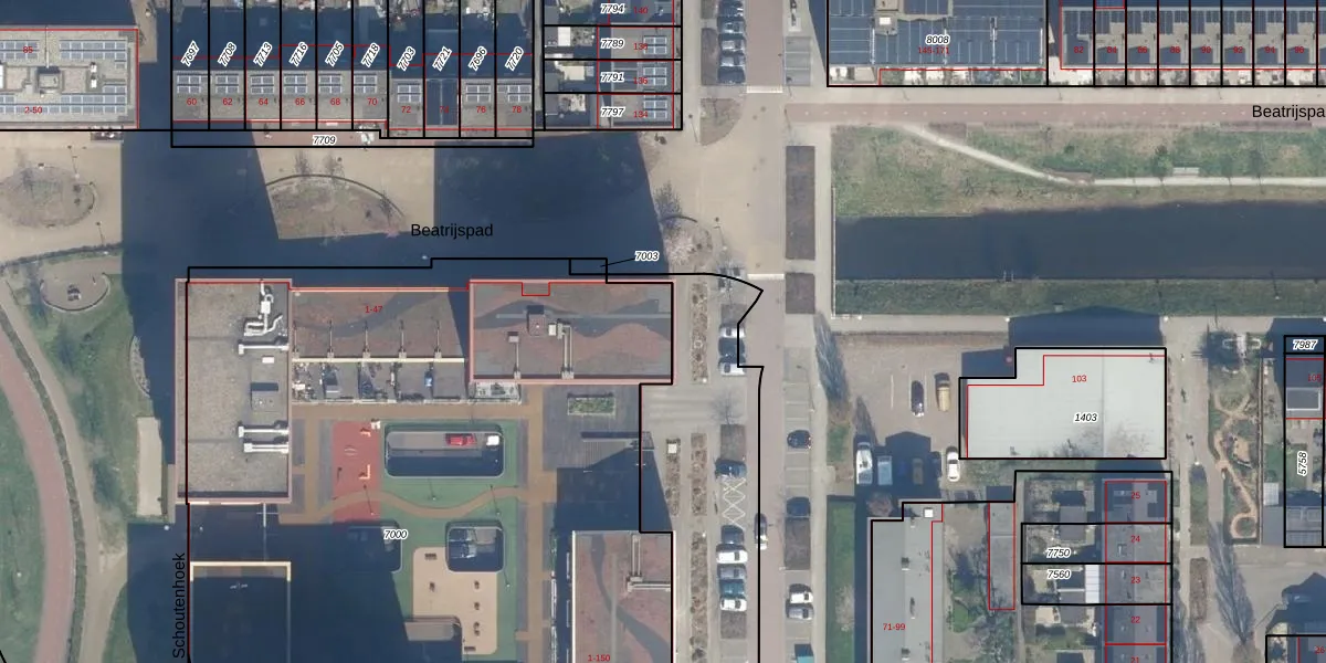 Het perceel waarop Beatrijspad 41 staat heeft een oppervlakte van 5865 m². Dit is een zeer groot perceel. De perceeloppervlakte wordt geregistreerd door het Kadaster. Gedetailleerde informatie over de maten van dit perceel kunt u vinden in het rapport Kadastrale kaart met maatvoering van Beatrijspad 41.