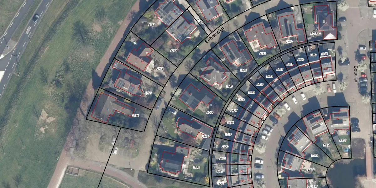 Het perceel waarop Behrenslijn 12 staat heeft een oppervlakte van 466 m². Dit is een groot perceel. De perceeloppervlakte wordt geregistreerd door het Kadaster. Gedetailleerde informatie over de maten van dit perceel kunt u vinden in het rapport Kadastrale kaart met maatvoering van Behrenslijn 12.
