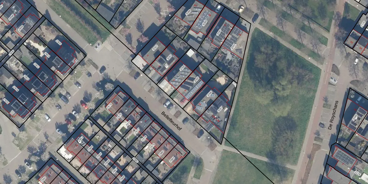 Het perceel waarop Bellefleurhof 8 staat heeft een oppervlakte van 283 m². Dit is een middelgroot perceel. De perceeloppervlakte wordt geregistreerd door het Kadaster. Gedetailleerde informatie over de maten van dit perceel kunt u vinden in het rapport Kadastrale kaart met maatvoering van Bellefleurhof 8.