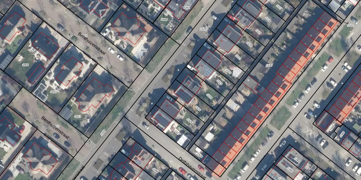Gebruik de zoekbalk of klik op een perceel voor informatie over de adressen binnen dit perceel.