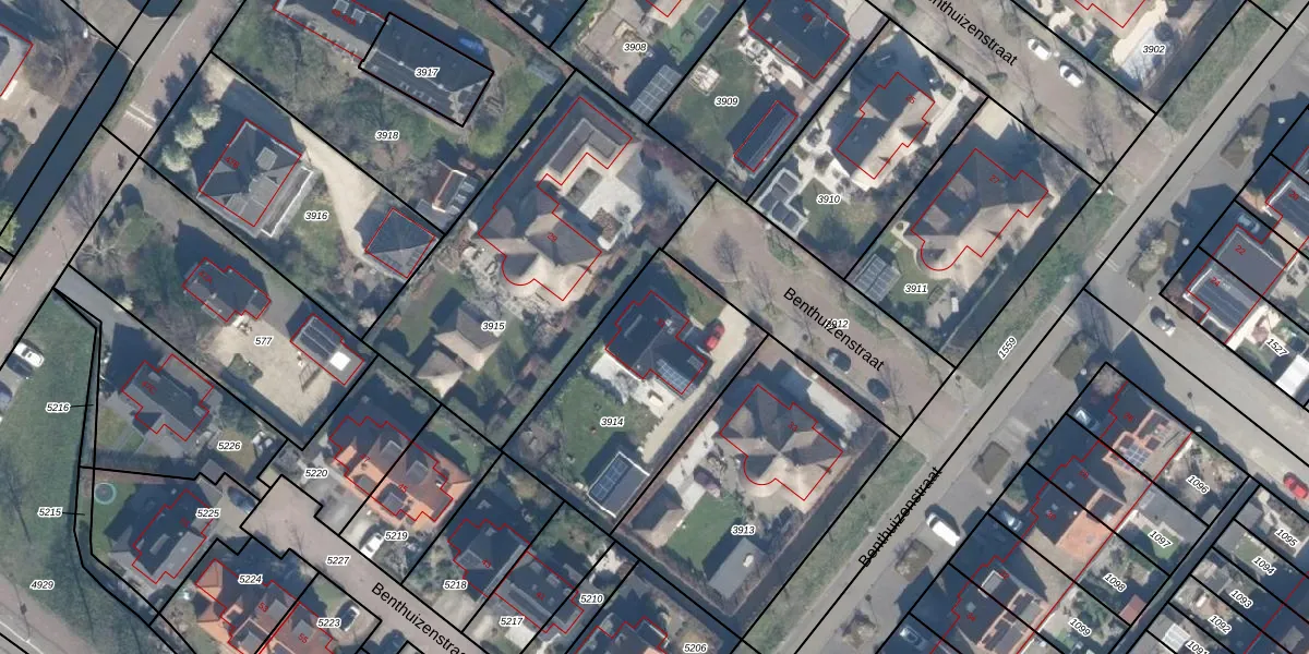 Het perceel waarop Benthuizenstraat 31 staat heeft een oppervlakte van 810 m². Dit is een groot perceel. De perceeloppervlakte wordt geregistreerd door het Kadaster. Gedetailleerde informatie over de maten van dit perceel kunt u vinden in het rapport Kadastrale kaart met maatvoering van Benthuizenstraat 31.