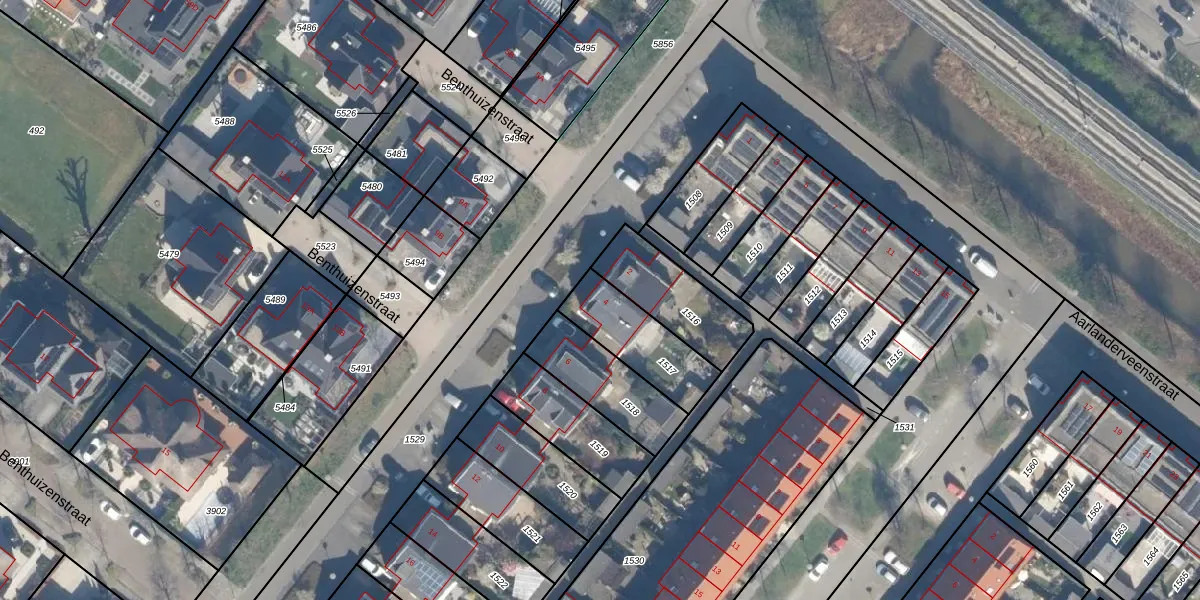 Gebruik de zoekbalk of klik op een perceel voor informatie over de adressen binnen dit perceel.