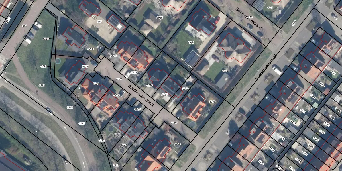 Het perceel waarop Benthuizenstraat 41 staat heeft een oppervlakte van 243 m². Dit is een middelgroot perceel. De perceeloppervlakte wordt geregistreerd door het Kadaster. Gedetailleerde informatie over de maten van dit perceel kunt u vinden in het rapport Kadastrale kaart met maatvoering van Benthuizenstraat 41.