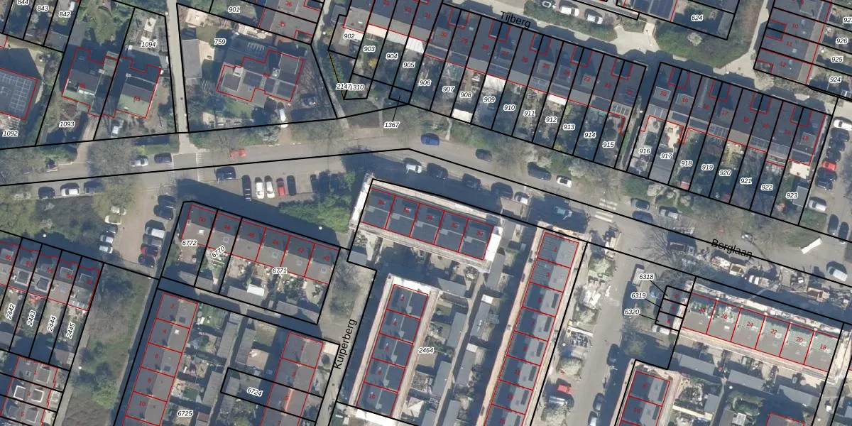 Het perceel waarop Berglaan 34 staat heeft een oppervlakte van 2586 m². Dit is een zeer groot perceel. De perceeloppervlakte wordt geregistreerd door het Kadaster. Gedetailleerde informatie over de maten van dit perceel kunt u vinden in het rapport Kadastrale kaart met maatvoering van Berglaan 34.