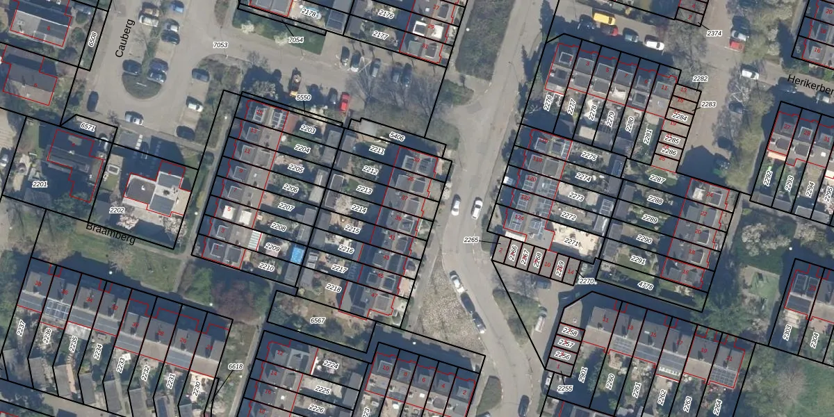 Gebruik de zoekbalk of klik op een perceel voor informatie over de adressen binnen dit perceel.