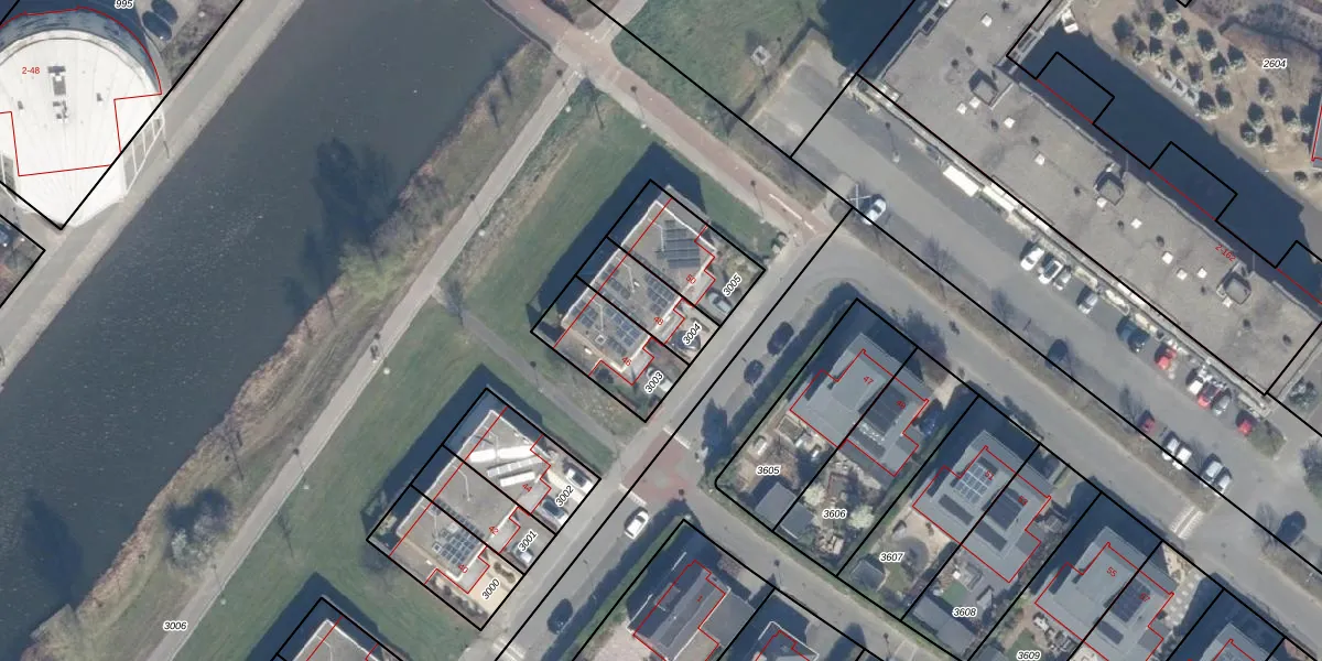 Gebruik de zoekbalk of klik op een perceel voor informatie over de adressen binnen dit perceel.