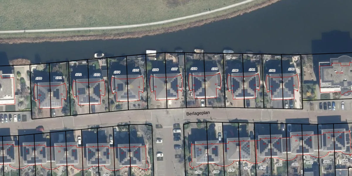 Het perceel waarop Berlageplan 83 staat heeft een oppervlakte van 348 m². Dit is een groot perceel. De perceeloppervlakte wordt geregistreerd door het Kadaster. Gedetailleerde informatie over de maten van dit perceel kunt u vinden in het rapport Kadastrale kaart met maatvoering van Berlageplan 83.