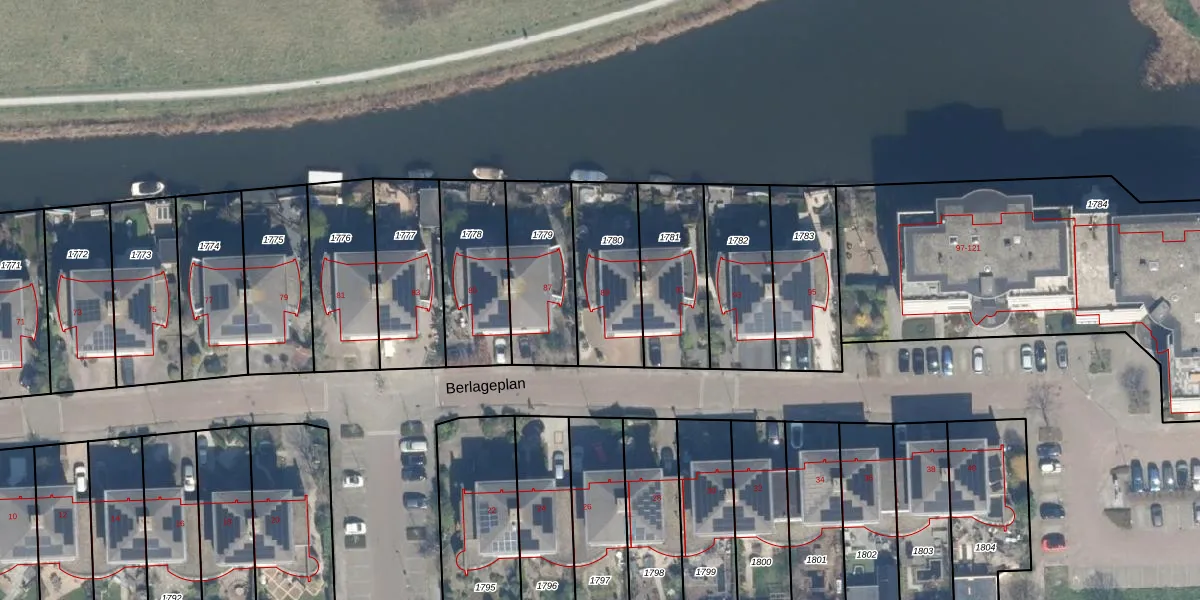 Gebruik de zoekbalk of klik op een perceel voor informatie over de adressen binnen dit perceel.