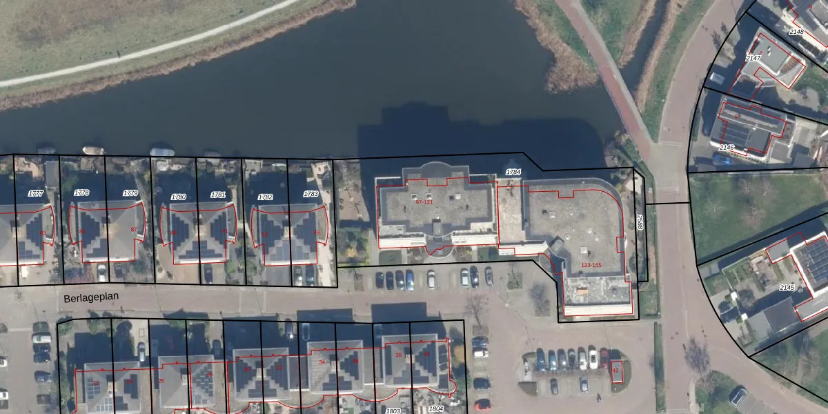 Het perceel waarop Berlageplan 97 staat heeft een oppervlakte van 2095 m². Dit is een zeer groot perceel. De perceeloppervlakte wordt geregistreerd door het Kadaster. Gedetailleerde informatie over de maten van dit perceel kunt u vinden in het rapport Kadastrale kaart met maatvoering van Berlageplan 97.