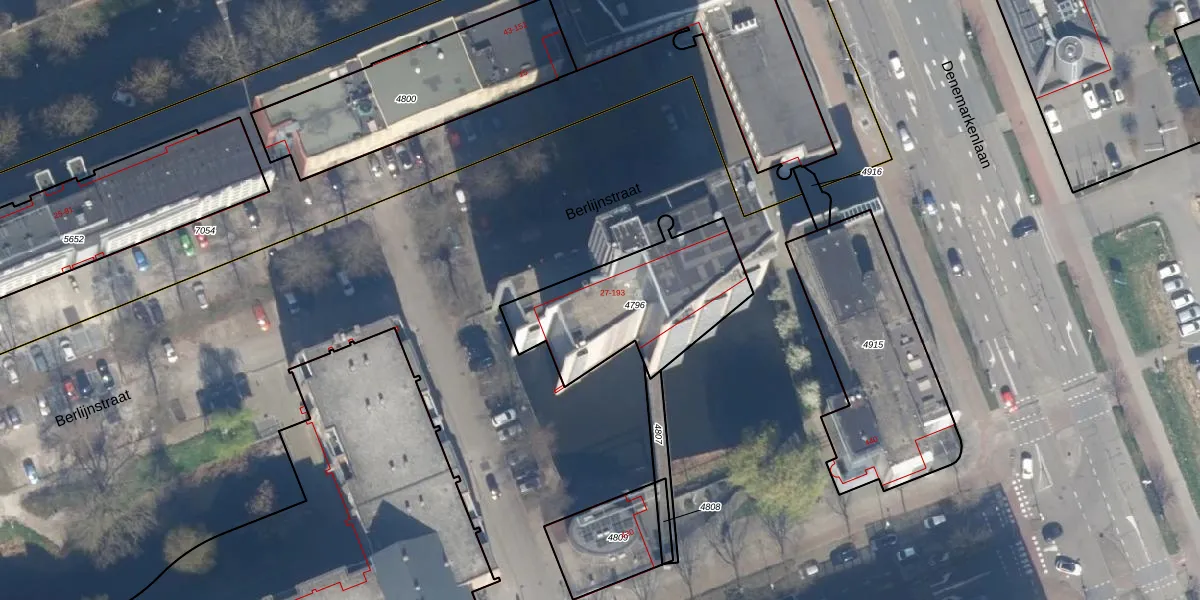 Het perceel waarop Berlijnstraat 57 staat heeft een oppervlakte van 620 m². Dit is een groot perceel. De perceeloppervlakte wordt geregistreerd door het Kadaster. Gedetailleerde informatie over de maten van dit perceel kunt u vinden in het rapport Kadastrale kaart met maatvoering van Berlijnstraat 57.