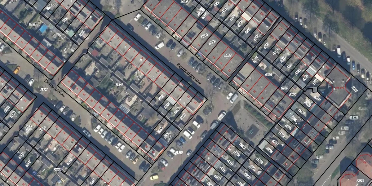 Het perceel waarop Bermudablauw 21 staat heeft een oppervlakte van 121 m². Dit is een middelgroot perceel. De perceeloppervlakte wordt geregistreerd door het Kadaster. Gedetailleerde informatie over de maten van dit perceel kunt u vinden in het rapport Kadastrale kaart met maatvoering van Bermudablauw 21.