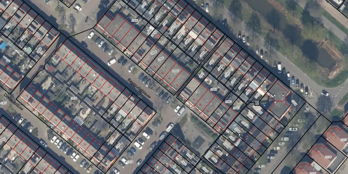 Het perceel waarop Bermudablauw 22 staat heeft een oppervlakte van 376 m². Dit is een groot perceel. De perceeloppervlakte wordt geregistreerd door het Kadaster. Gedetailleerde informatie over de maten van dit perceel kunt u vinden in het rapport Kadastrale kaart met maatvoering van Bermudablauw 22.