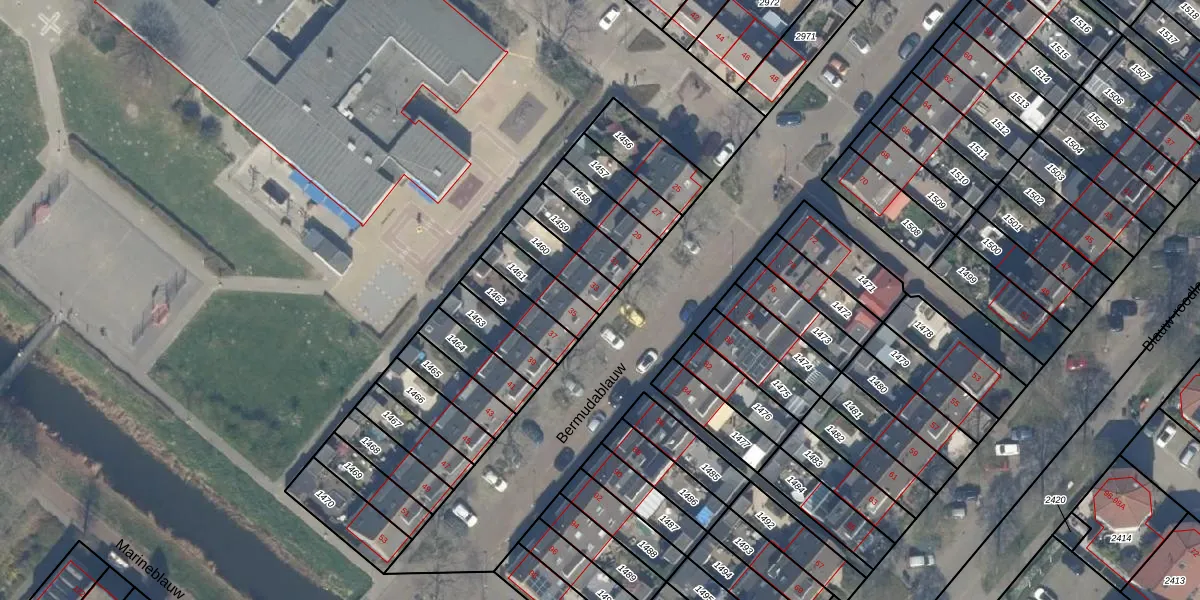 Het perceel waarop Bermudablauw 33 staat heeft een oppervlakte van 116 m². Dit is een middelgroot perceel. De perceeloppervlakte wordt geregistreerd door het Kadaster. Gedetailleerde informatie over de maten van dit perceel kunt u vinden in het rapport Kadastrale kaart met maatvoering van Bermudablauw 33.