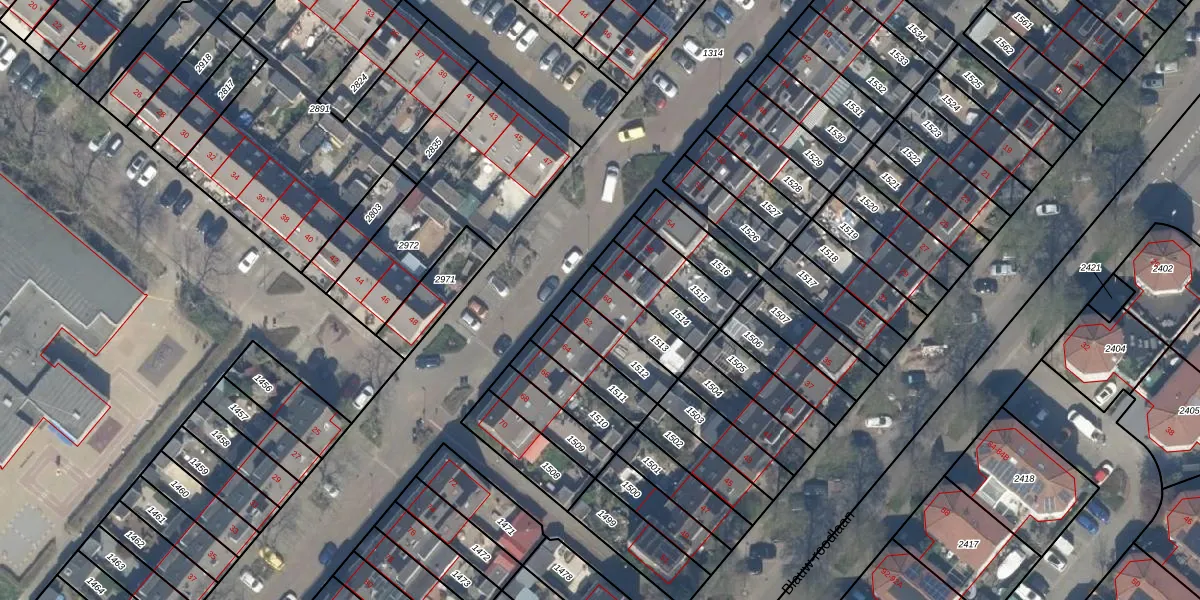 Gebruik de zoekbalk of klik op een perceel voor informatie over de adressen binnen dit perceel.