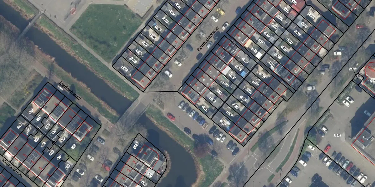 Het perceel waarop Bermudablauw 98 staat heeft een oppervlakte van 147 m². Dit is een middelgroot perceel. De perceeloppervlakte wordt geregistreerd door het Kadaster. Gedetailleerde informatie over de maten van dit perceel kunt u vinden in het rapport Kadastrale kaart met maatvoering van Bermudablauw 98.