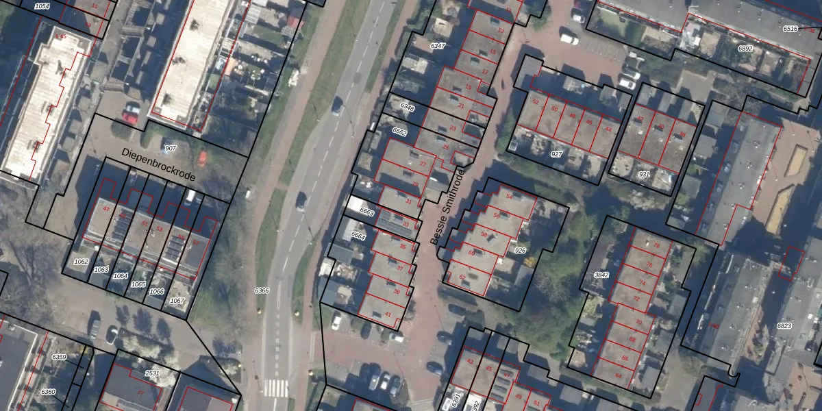 Het perceel waarop Bessie Smithrode 31 staat heeft een oppervlakte van 480 m². Dit is een groot perceel. De perceeloppervlakte wordt geregistreerd door het Kadaster. Gedetailleerde informatie over de maten van dit perceel kunt u vinden in het rapport Kadastrale kaart met maatvoering van Bessie Smithrode 31.