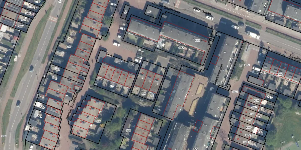 Het perceel waarop Bessie Smithrode 40 staat heeft een oppervlakte van 392 m². Dit is een groot perceel. De perceeloppervlakte wordt geregistreerd door het Kadaster. Gedetailleerde informatie over de maten van dit perceel kunt u vinden in het rapport Kadastrale kaart met maatvoering van Bessie Smithrode 40.