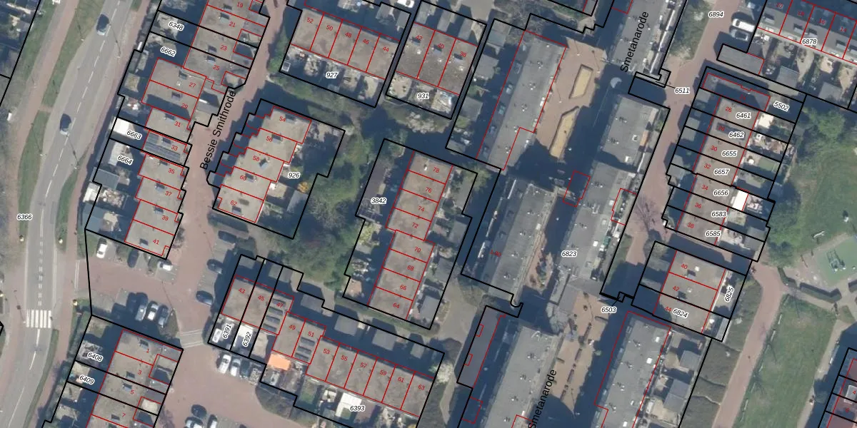 Het perceel waarop Bessie Smithrode 74 staat heeft een oppervlakte van 896 m². Dit is een groot perceel. De perceeloppervlakte wordt geregistreerd door het Kadaster. Gedetailleerde informatie over de maten van dit perceel kunt u vinden in het rapport Kadastrale kaart met maatvoering van Bessie Smithrode 74.