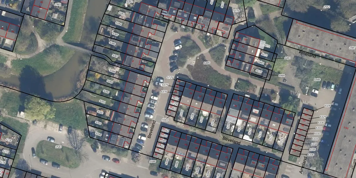 Het perceel waarop Beveland 35 staat heeft een oppervlakte van 16 m². Dit is een klein perceel. De perceeloppervlakte wordt geregistreerd door het Kadaster. Gedetailleerde informatie over de maten van dit perceel kunt u vinden in het rapport Kadastrale kaart met maatvoering van Beveland 35.