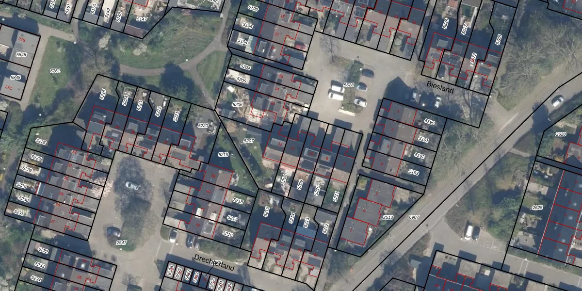 Het perceel waarop Biesland 11 staat heeft een oppervlakte van 171 m². Dit is een middelgroot perceel. De perceeloppervlakte wordt geregistreerd door het Kadaster. Gedetailleerde informatie over de maten van dit perceel kunt u vinden in het rapport Kadastrale kaart met maatvoering van Biesland 11.