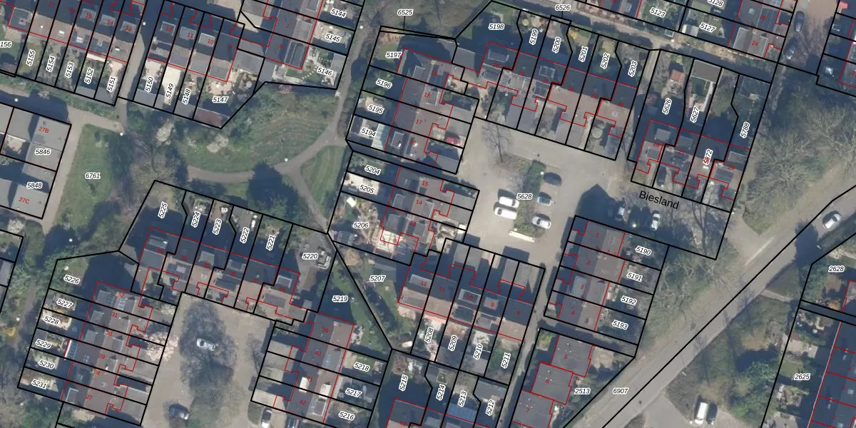 Het perceel waarop Biesland 14 staat heeft een oppervlakte van 156 m². Dit is een middelgroot perceel. De perceeloppervlakte wordt geregistreerd door het Kadaster. Gedetailleerde informatie over de maten van dit perceel kunt u vinden in het rapport Kadastrale kaart met maatvoering van Biesland 14.