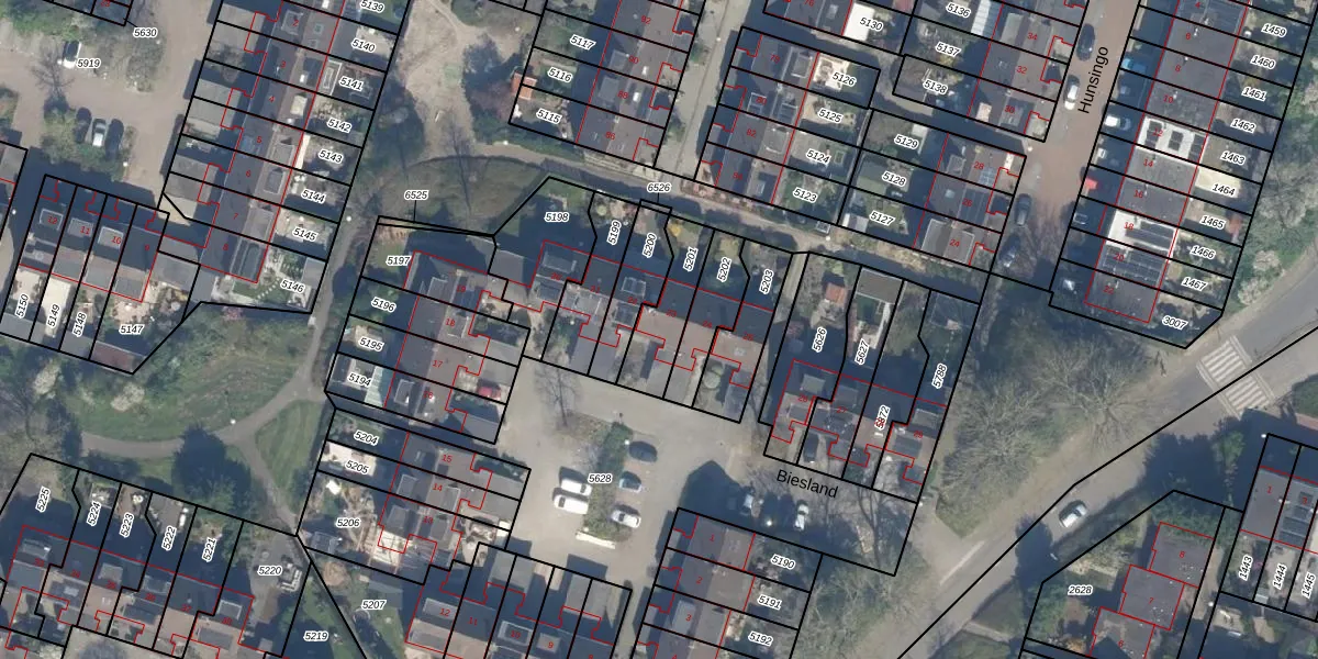 Het perceel waarop Biesland 23 staat heeft een oppervlakte van 175 m². Dit is een middelgroot perceel. De perceeloppervlakte wordt geregistreerd door het Kadaster. Gedetailleerde informatie over de maten van dit perceel kunt u vinden in het rapport Kadastrale kaart met maatvoering van Biesland 23.