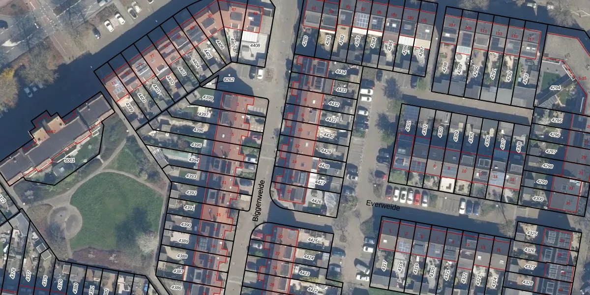 Gebruik de zoekbalk of klik op een perceel voor informatie over de adressen binnen dit perceel.
