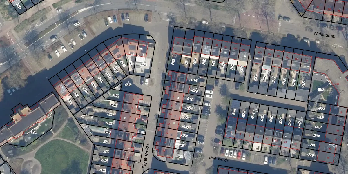 Gebruik de zoekbalk of klik op een perceel voor informatie over de adressen binnen dit perceel.