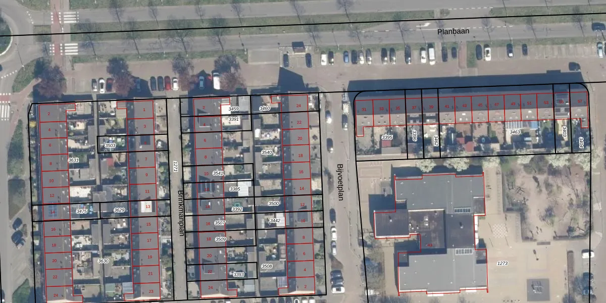 Het perceel waarop Bijvoetplan 18 staat heeft een oppervlakte van 873 m². Dit is een groot perceel. De perceeloppervlakte wordt geregistreerd door het Kadaster. Gedetailleerde informatie over de maten van dit perceel kunt u vinden in het rapport Kadastrale kaart met maatvoering van Bijvoetplan 18.