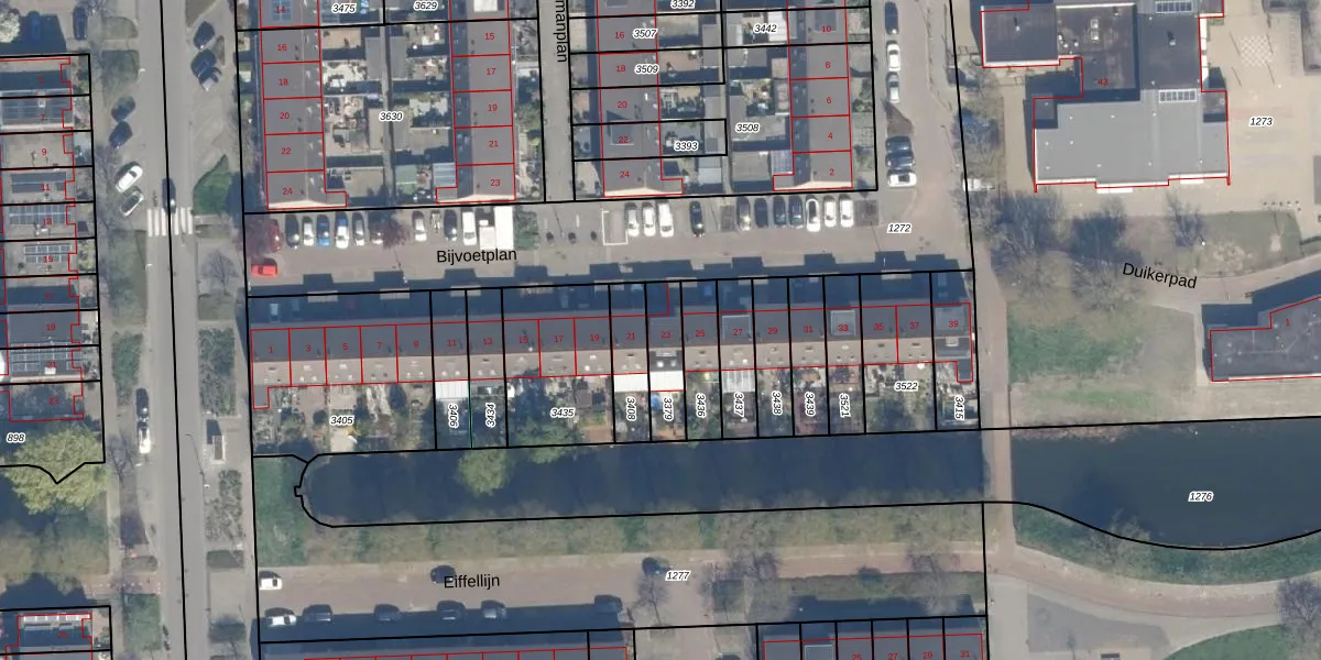 Gebruik de zoekbalk of klik op een perceel voor informatie over de adressen binnen dit perceel.