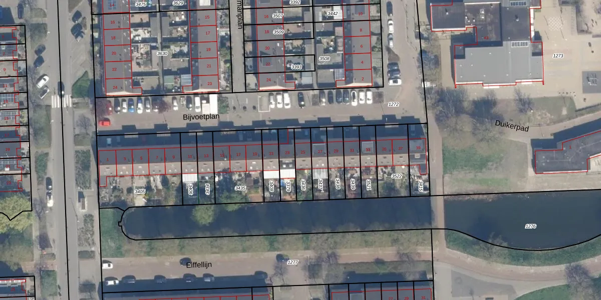 Gebruik de zoekbalk of klik op een perceel voor informatie over de adressen binnen dit perceel.