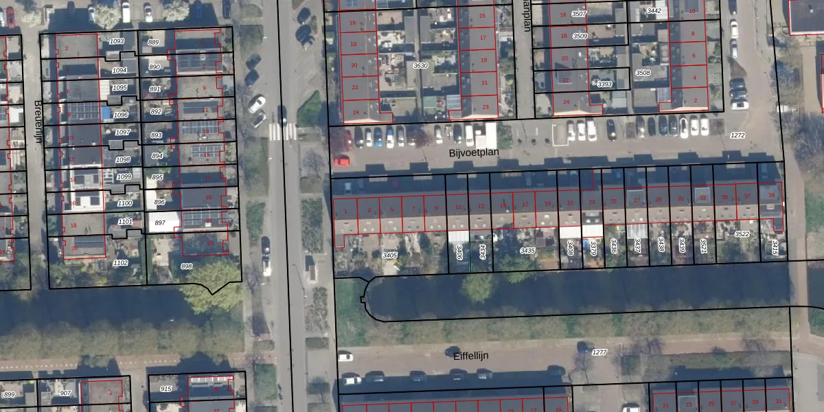 Het perceel waarop Bijvoetplan 7 staat heeft een oppervlakte van 680 m². Dit is een groot perceel. De perceeloppervlakte wordt geregistreerd door het Kadaster. Gedetailleerde informatie over de maten van dit perceel kunt u vinden in het rapport Kadastrale kaart met maatvoering van Bijvoetplan 7.