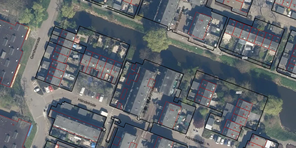 Het perceel waarop Billie Holidayrode 19 staat heeft een oppervlakte van 6820 m². Dit is een zeer groot perceel. De perceeloppervlakte wordt geregistreerd door het Kadaster. Gedetailleerde informatie over de maten van dit perceel kunt u vinden in het rapport Kadastrale kaart met maatvoering van Billie Holidayrode 19.