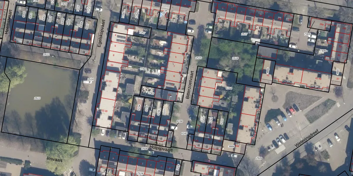 Het perceel waarop Bitterzoetvaart 11 staat heeft een oppervlakte van 2471 m². Dit is een zeer groot perceel. De perceeloppervlakte wordt geregistreerd door het Kadaster. Gedetailleerde informatie over de maten van dit perceel kunt u vinden in het rapport Kadastrale kaart met maatvoering van Bitterzoetvaart 11.