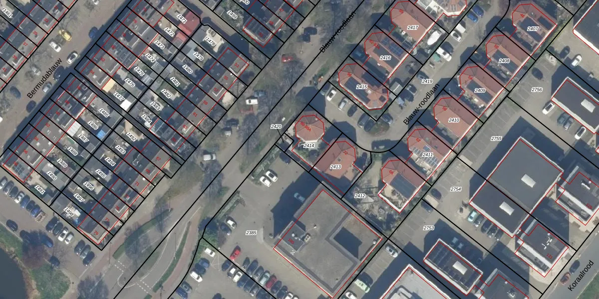 Blauw-roodlaan 98-A is gelegen op kadastraal perceel ZWD01D2414. Deze kadastrale aanduiding is uniek en wordt gebruikt door het Kadaster om eigendomsrechten en andere zakelijke rechten vast te leggen. Het perceel maakt onderdeel uit van de kadastrale gemeente Zegwaard.