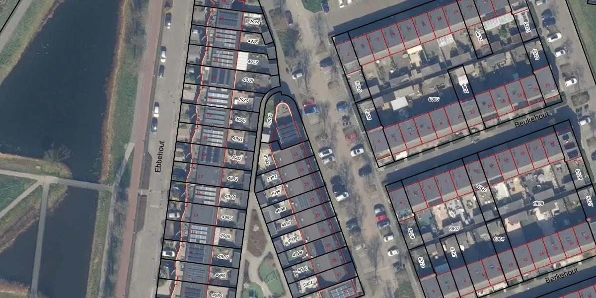 Gebruik de zoekbalk of klik op een perceel voor informatie over de adressen binnen dit perceel.