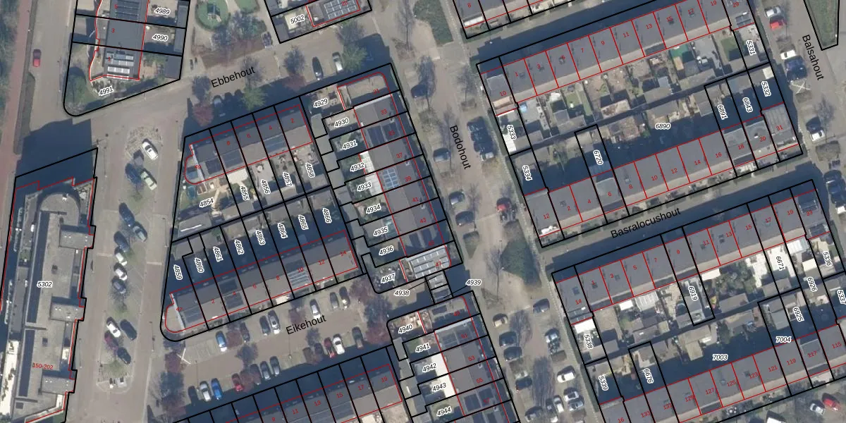 Het perceel waarop Bodohout 43 staat heeft een oppervlakte van 121 m². Dit is een middelgroot perceel. De perceeloppervlakte wordt geregistreerd door het Kadaster. Gedetailleerde informatie over de maten van dit perceel kunt u vinden in het rapport Kadastrale kaart met maatvoering van Bodohout 43.
