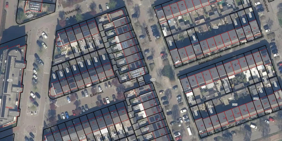 Gebruik de zoekbalk of klik op een perceel voor informatie over de adressen binnen dit perceel.