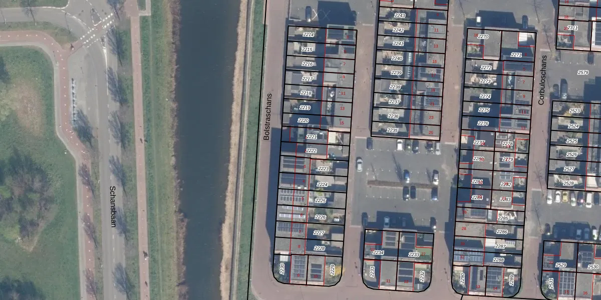 Het perceel waarop Bolstraschans 2 staat heeft een oppervlakte van 113 m². Dit is een middelgroot perceel. De perceeloppervlakte wordt geregistreerd door het Kadaster. Gedetailleerde informatie over de maten van dit perceel kunt u vinden in het rapport Kadastrale kaart met maatvoering van Bolstraschans 2.