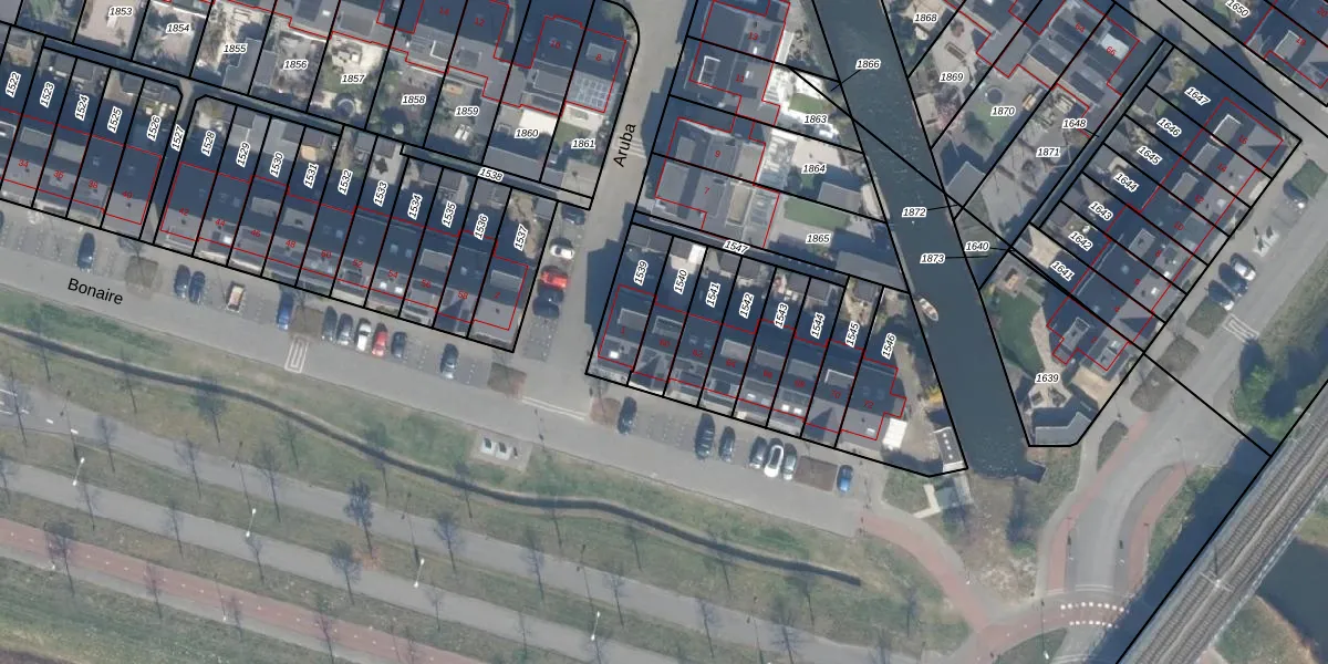 Gebruik de zoekbalk of klik op een perceel voor informatie over de adressen binnen dit perceel.