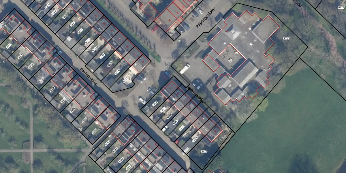 Het perceel waarop Bonenakker 1 staat heeft een oppervlakte van 187 m². Dit is een middelgroot perceel. De perceeloppervlakte wordt geregistreerd door het Kadaster. Gedetailleerde informatie over de maten van dit perceel kunt u vinden in het rapport Kadastrale kaart met maatvoering van Bonenakker 1.
