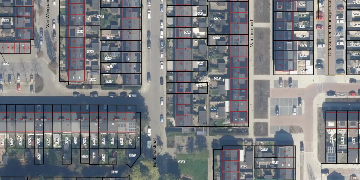 Gebruik de zoekbalk of klik op een perceel voor informatie over de adressen binnen dit perceel.